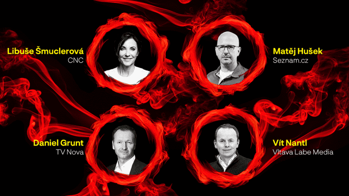 - Čeká vás mediální debata o budoucnosti médií s šéfy největších českých mediálních domů. Diskutovat budou Libuše Šmuclerová (CNC), Daniel Grunt (TV Nova), Matěj Hušek (Seznam.cz) a Vít Nantl (VLM).